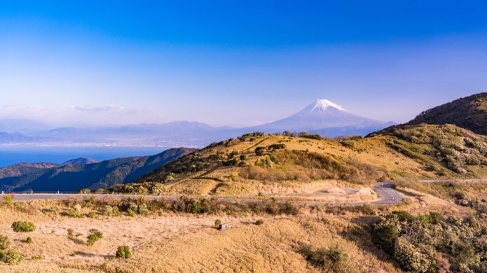 達磨山は、西伊豆に位置する牧歌的風景が広がるたおやかな山。 だるま山高原レストハウス付近からの景色は、かの横山大観に「日本一の富士の展望地」と言わしめたとか。 メインの登山ルートは、だるま山高原レストハウスから南下するコースと、土肥(とい)駐車場や戸田(へだ)駐車場から北上するコースがあります。